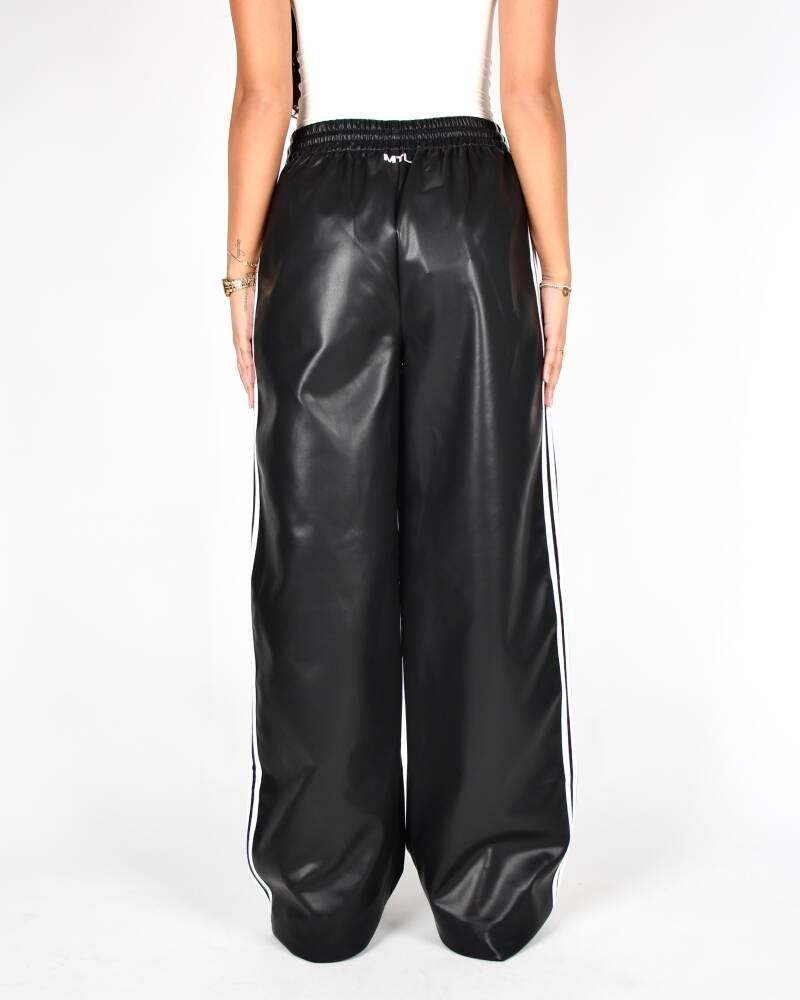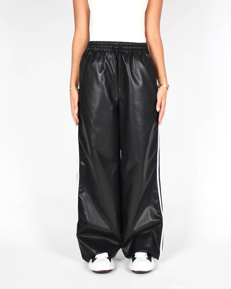 “LEATHER LOOK STRIPED OVERSIZED BLACK PANTS"