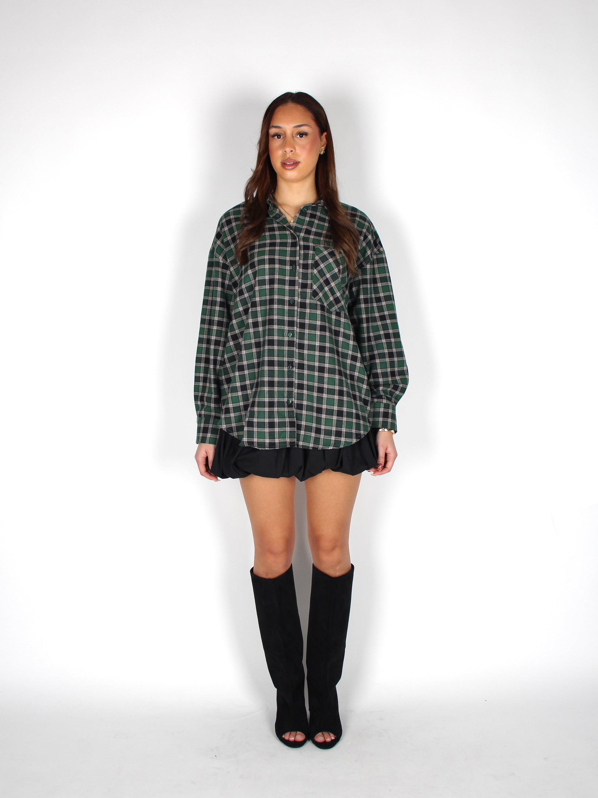 De Raye Blouse Green is een groene oversized blouse met een wit-zwarte ruitprint. Je kunt de blouse open, dicht of gecropped stylen om elke outfit af te maken. De Raye Blouse Green is perfect voor zowel casual outfits en festival days.